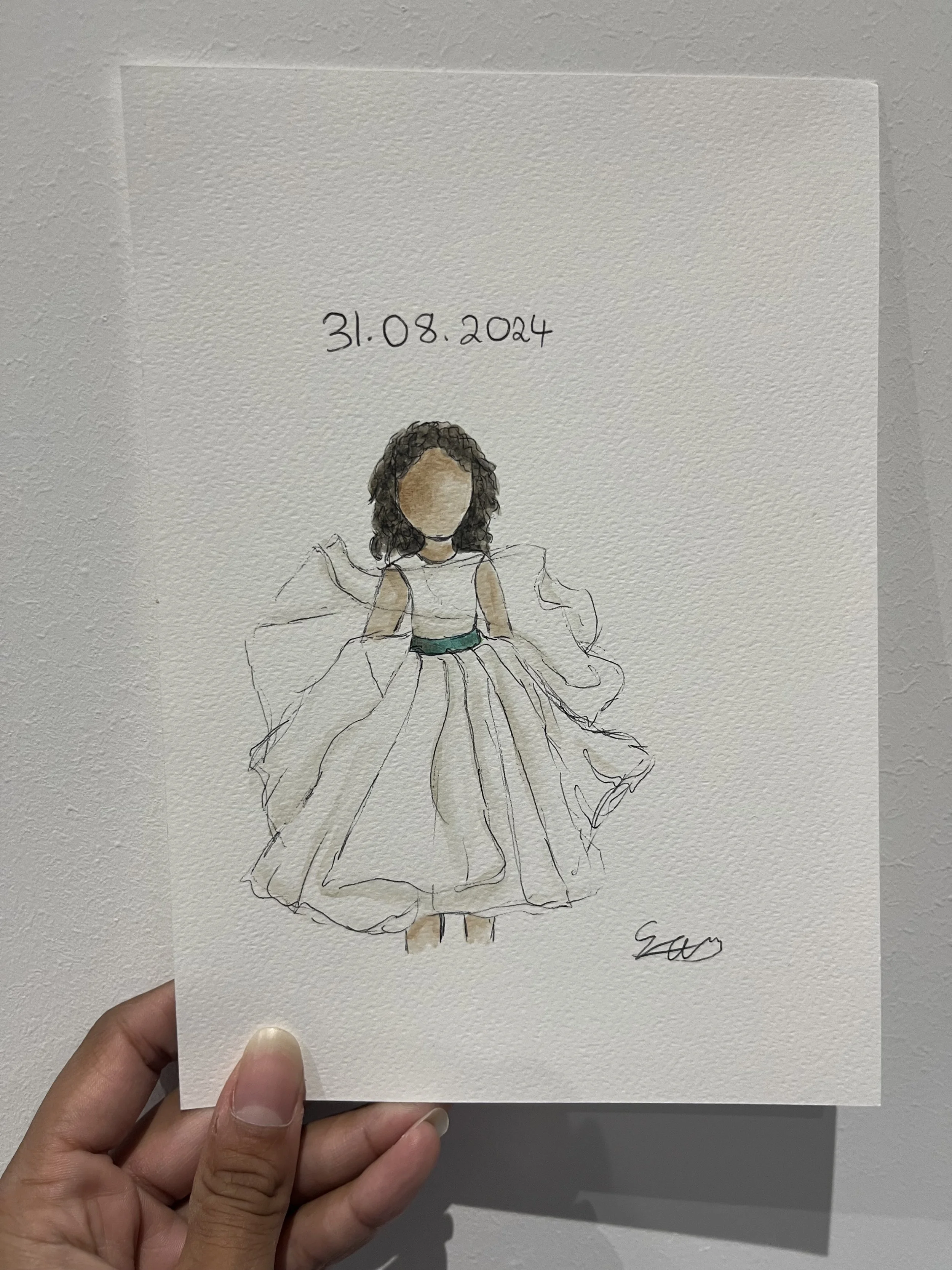 On the day I take photos of the guests and then illustrate them in the chosen style. No-one has to sit and pose (unless they want to) and your guests get to take home a special momentum from your event.